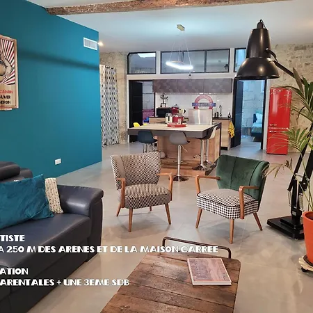 Loft D\'Artiste Atypique, Climatise,90 M2 , Hypercentre Nimes Arenes 6 Pers