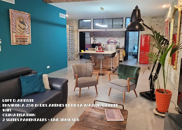 L'Atypique Des Arenes, Loft D'Artiste公寓距离尼姆-阿莱斯-卡马尔格-塞文5公里,步行5即可到Gambetta Coupole公交车站。